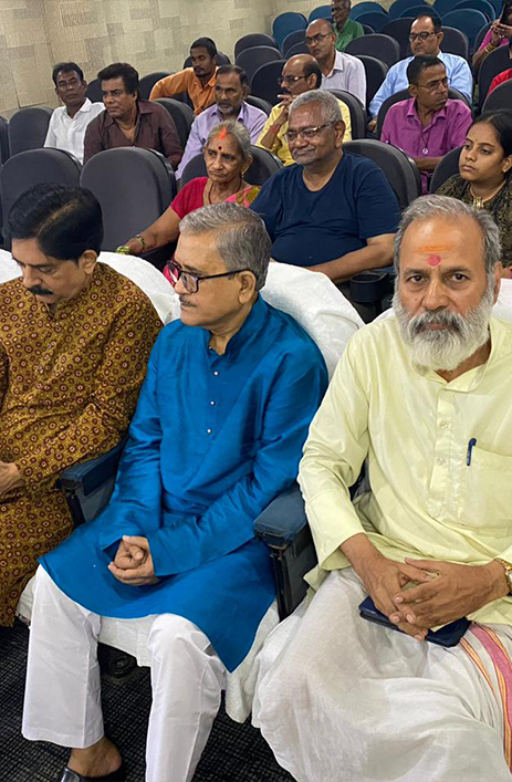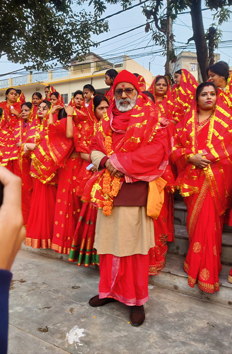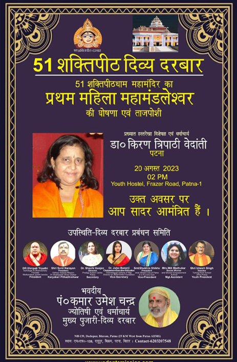 The Chief Priest of 51 Shaktipeeth Jyotish evam yoga maharshi Sri Umesh conducted oath taking ceremony to first female Mahamandleshwar Dr Kiran Tripathi in Youth hostel,near Hotel Maurya Patna