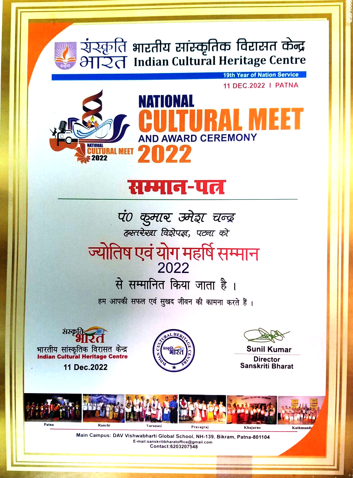 Being Awarded Jyotish Evam Yoga Maharshi at Youth Hostel, Near Hotel Maurya Patna
